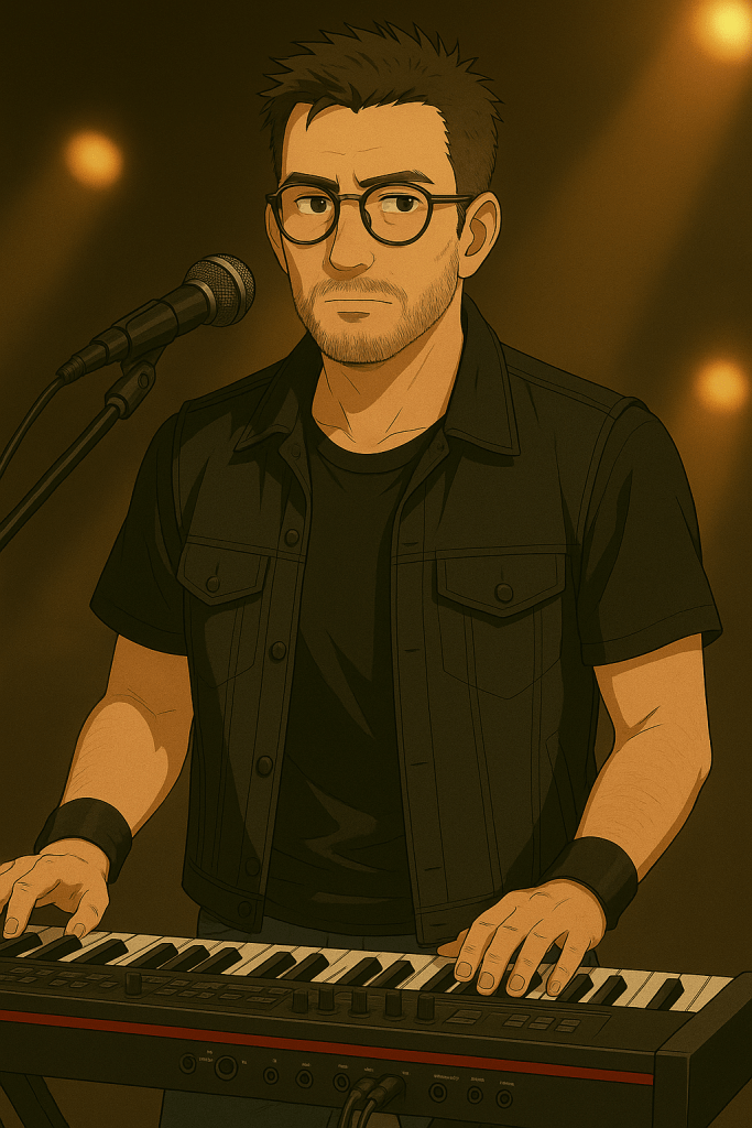 The quiet backbone of Rokkline, Leo Sharp brings depth, texture, and precision to every track the band releases. As the primary keyboardist and rhythm guitarist, he’s responsible for the atmospheric layers, dark synth swells, and intricate harmonies that give Rokkline its cinematic edge. His playing bridges the space between melody and mood—sometimes subtle, sometimes explosive, always intentional.