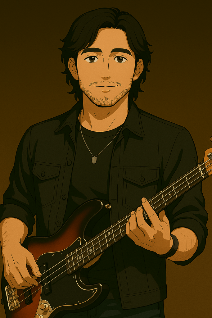 Tyler Cruz brings warmth, weight, and groove to Rokkline. His bass lines glide beneath the band’s harder edges, giving the music its backbone—smooth where it needs to be, powerful where it counts. Tyler is the steady pulse between Axel’s explosive drumming and Michael’s razor-sharp guitars, grounding the entire sound with effortless precision.